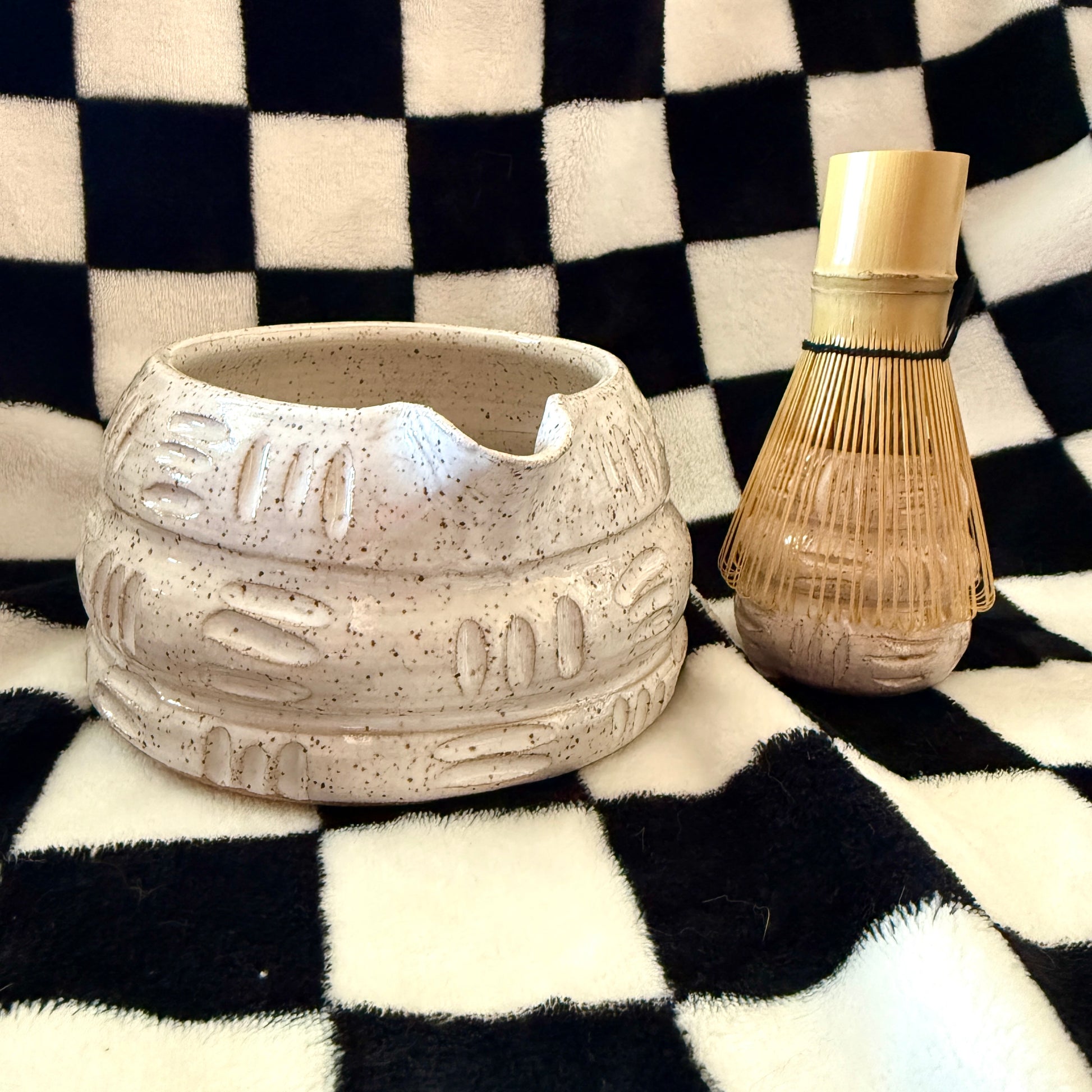 Made with speckled brown clay & can hold ~24 fluid oz. Glossy finish!